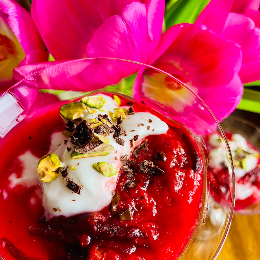 - mit Joghurt, z.B. Kokosjoghurt, in ein Glas schichten
