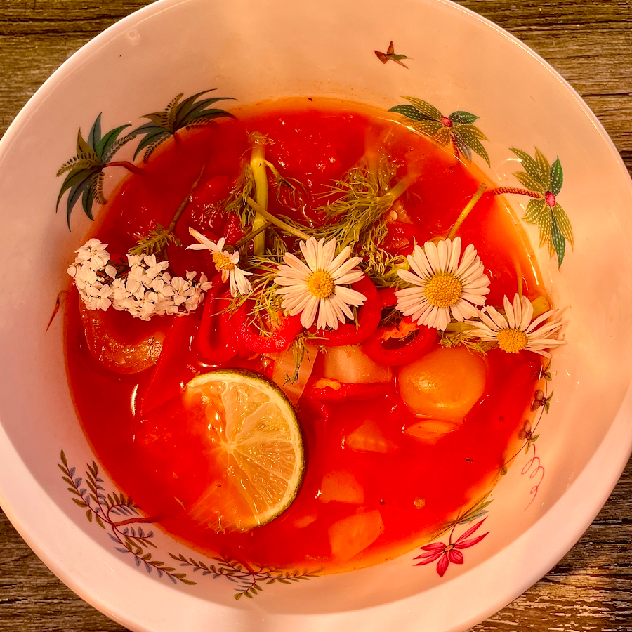 - ich hatte Schafgarbe und Gänseblümchen vor dem Frost gepflückt als gesunde Deko